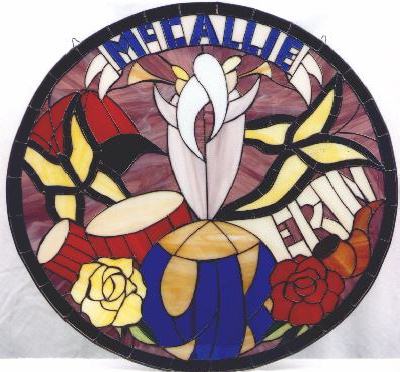 This stained glass window was designed and crafted by Ted Byrd from Williamsburg, Kentucky. Symbols of the lives of these two young brothers comprise the art work.
