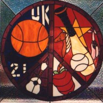Todd: The basketball is the symbol for Todd because he loved playing basketball. The blue background and the white UK letters represent his love of the University of Kentucky. The number 21 was the number on his jersey at SLMS which was retired. The Nike check is also chosen because Todd loved anything with Nike on it.